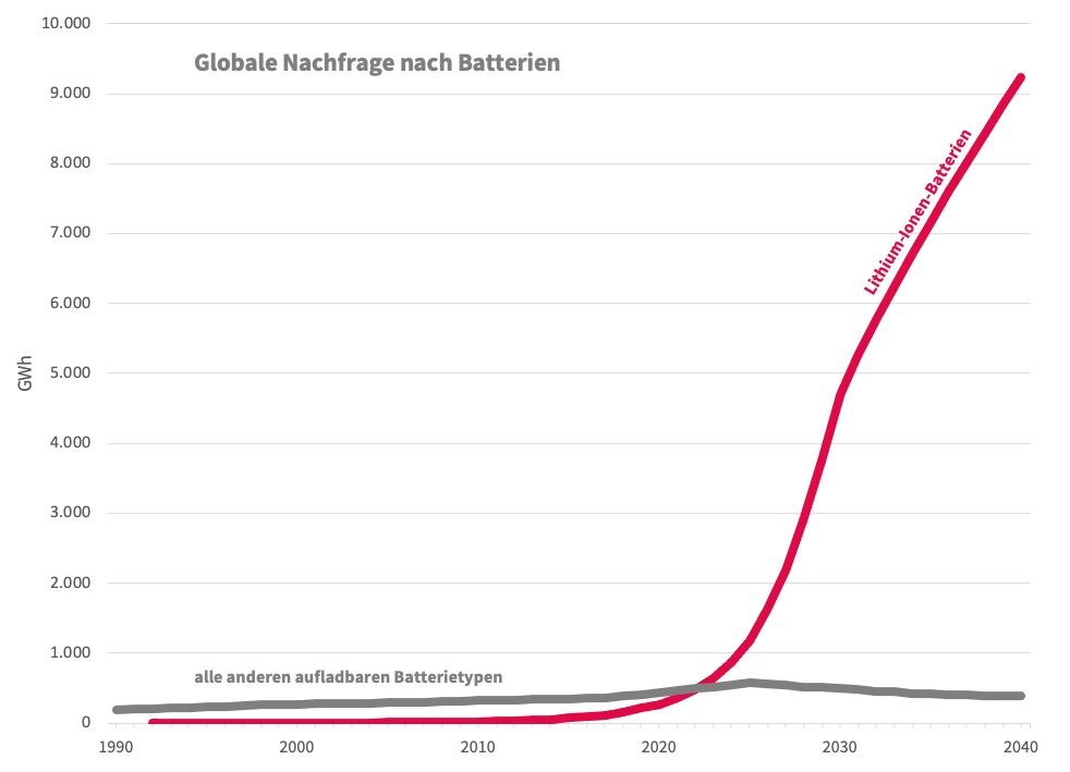 Als um das Jahr 2010 die Großserienfertigung von Elektroautos startete, wurde eine neue Phase der Kommerzialisierung eingeleitet. Seitdem wurden Lithium-Ionen-Batterien (LIB) kontinuierlich weiterentwickelt. Die Energiedichte wurde stetig optimiert, die Kosten reduziert, die Zellformate vergrößert und es ist zu erwarten, dass sich dieser Trend fortsetzt. Damit erschließen LIB weitere Märkte in der Elektromobilität, in stationären Anwendungen und tragbaren Geräten. Derzeit rechnen Analysten mit jährlichen Wachstumsraten in der Batterienachfrage von 20 Prozent. Spätestens im Jahr 2030 dürfte die globale Nachfrage nach Lithium-Ionen-Batterien bereits bei mehr als 1 TWh liegen und Blei-Säure-Batterien längst auf Platz 2 verwiesen haben.